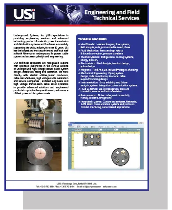 Underground Systems, Inc. (USi) specializes in providing engineering services and advanced technology products for electric power transmission and distribution systems and has been successfully supporting the utility industry for over 45 years. USi has the largest and most experienced technical staff in North America for underground HV power cable system and accessory design and engineering.