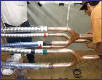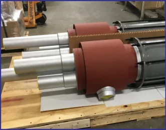 Each USi joint casing is designed to work in its installation environment (e.g. a specific manhole or buried pipe-type cable application) to prevent thermal mechanical damage from occurring in the splice and cable and to provide adequate room for installation. Evacuation, drain and pressurizing valves are included when required. Normal and special casings (trifurcators, spreaderheads and diffusion chambers) are also available. Sleeve assemblies and component parts for self-contained and lead-jacketed cables are available in many configurations with materials including carbon steel, stainless steel, lead, copper and aluminum.