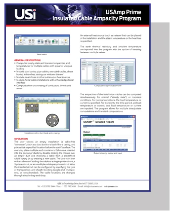To learn more about USAmp Prime: Insulated Cable Ampacity Software, please download the PDF Brochure.